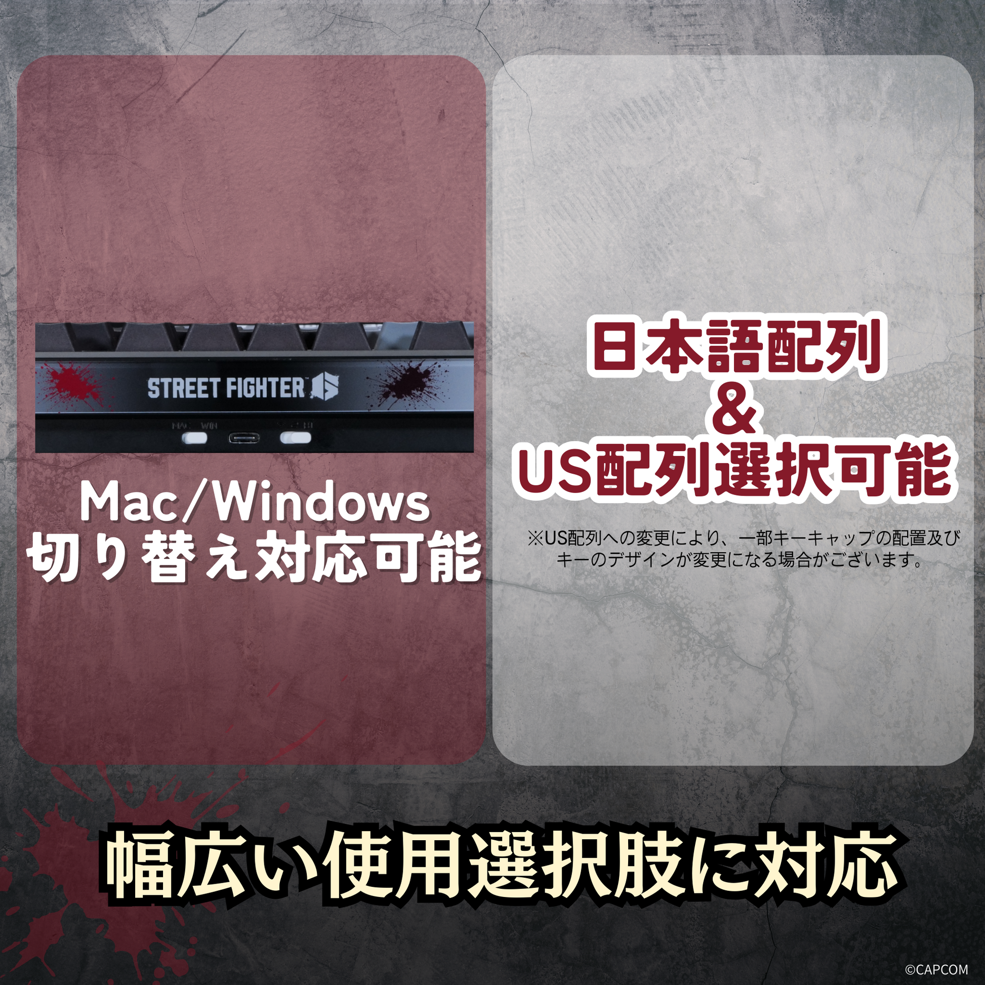 さらに、日本語配列とUS配列を選択できるため、利用シーンや好みに合わせた最適なレイアウトをお選びいただけます。