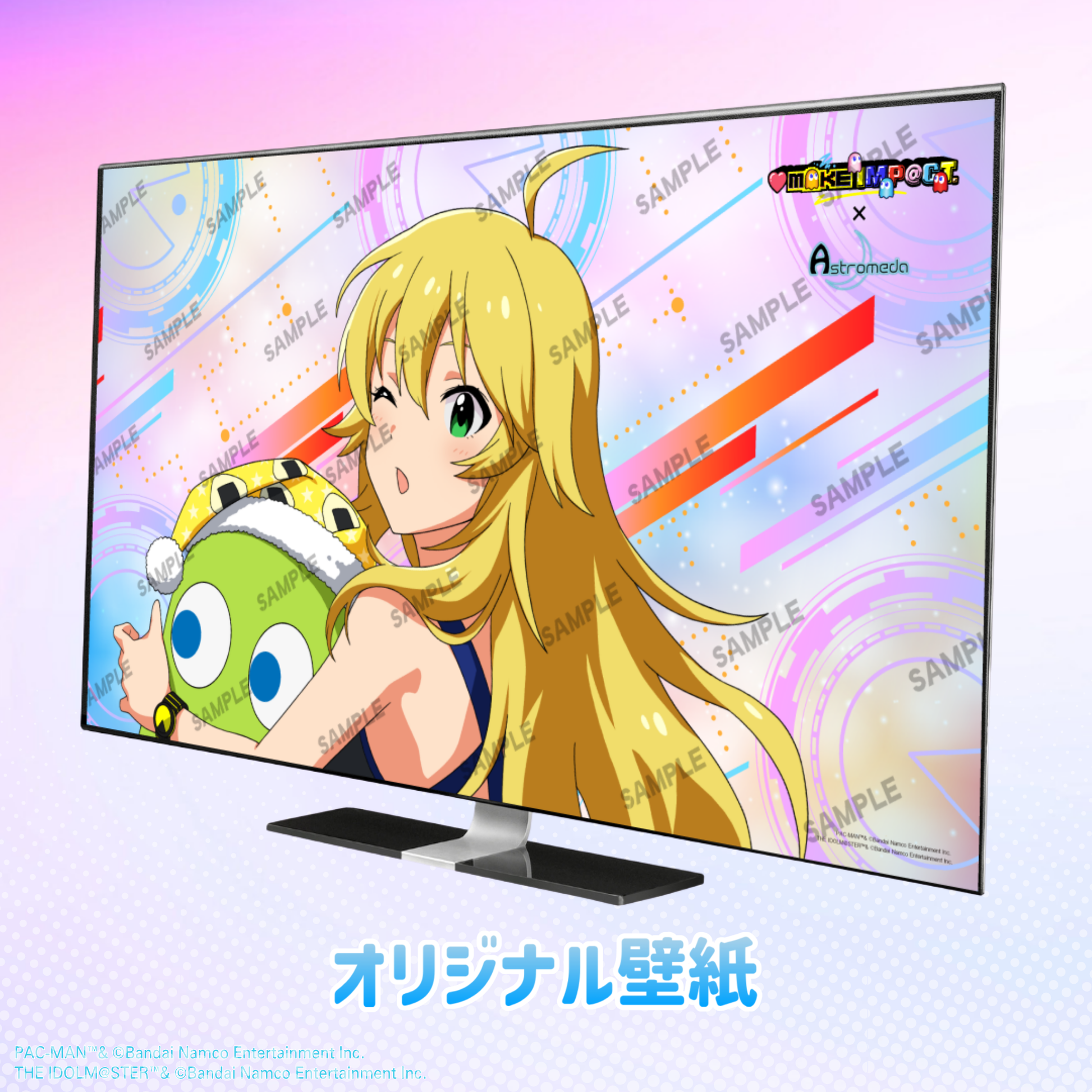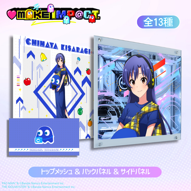 バックパネルには、アイドルの等身イラストデザインや『パックマン』のゲームアイテムなどを採用しておりポップで可愛い世界を再現!